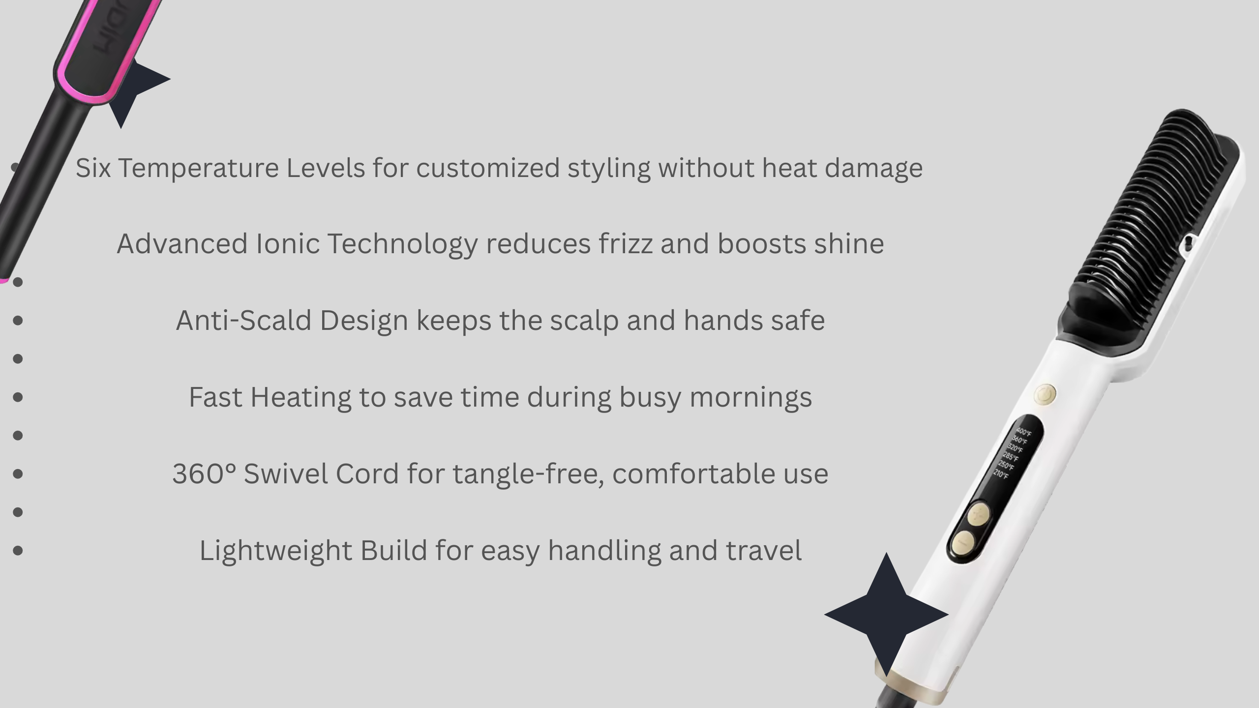 Hair Straightening Brush, 30 Seconds Fast Heating & 3 Temperature